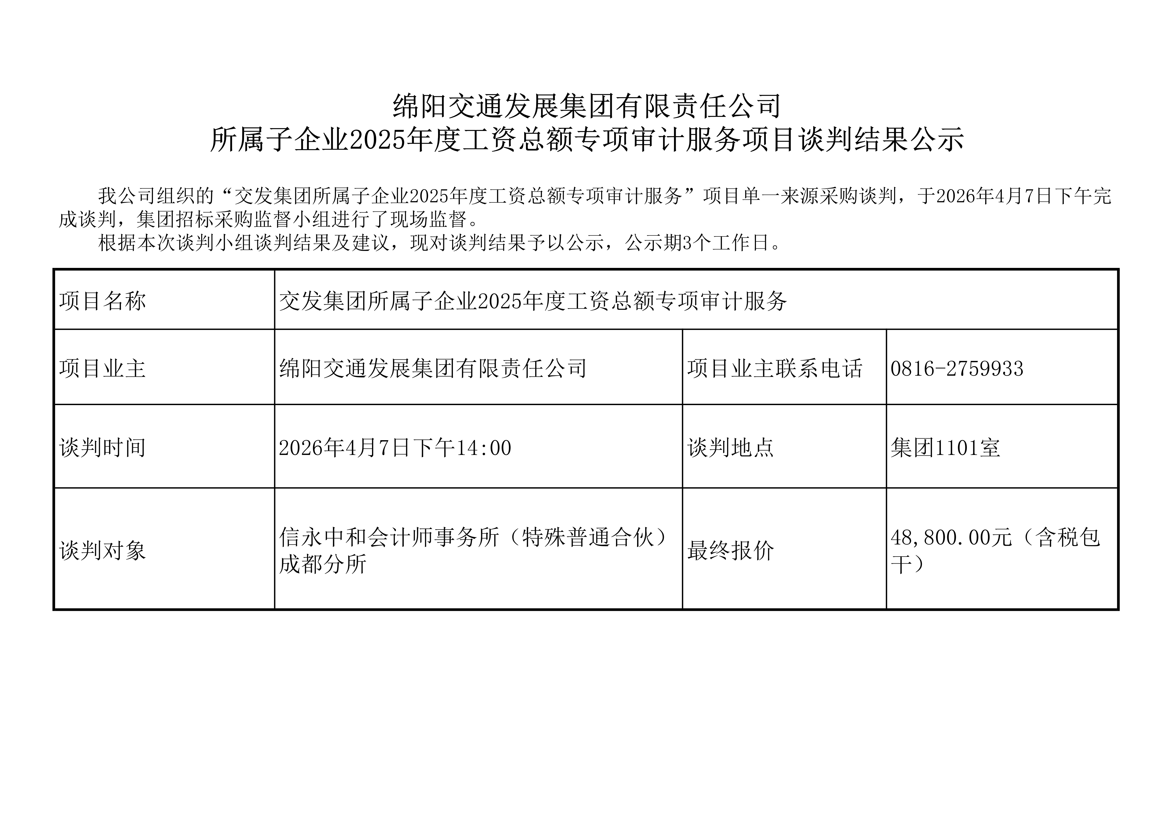 约拍 所属子企业2025年度工资总额专项审计服务项目谈判结果公示