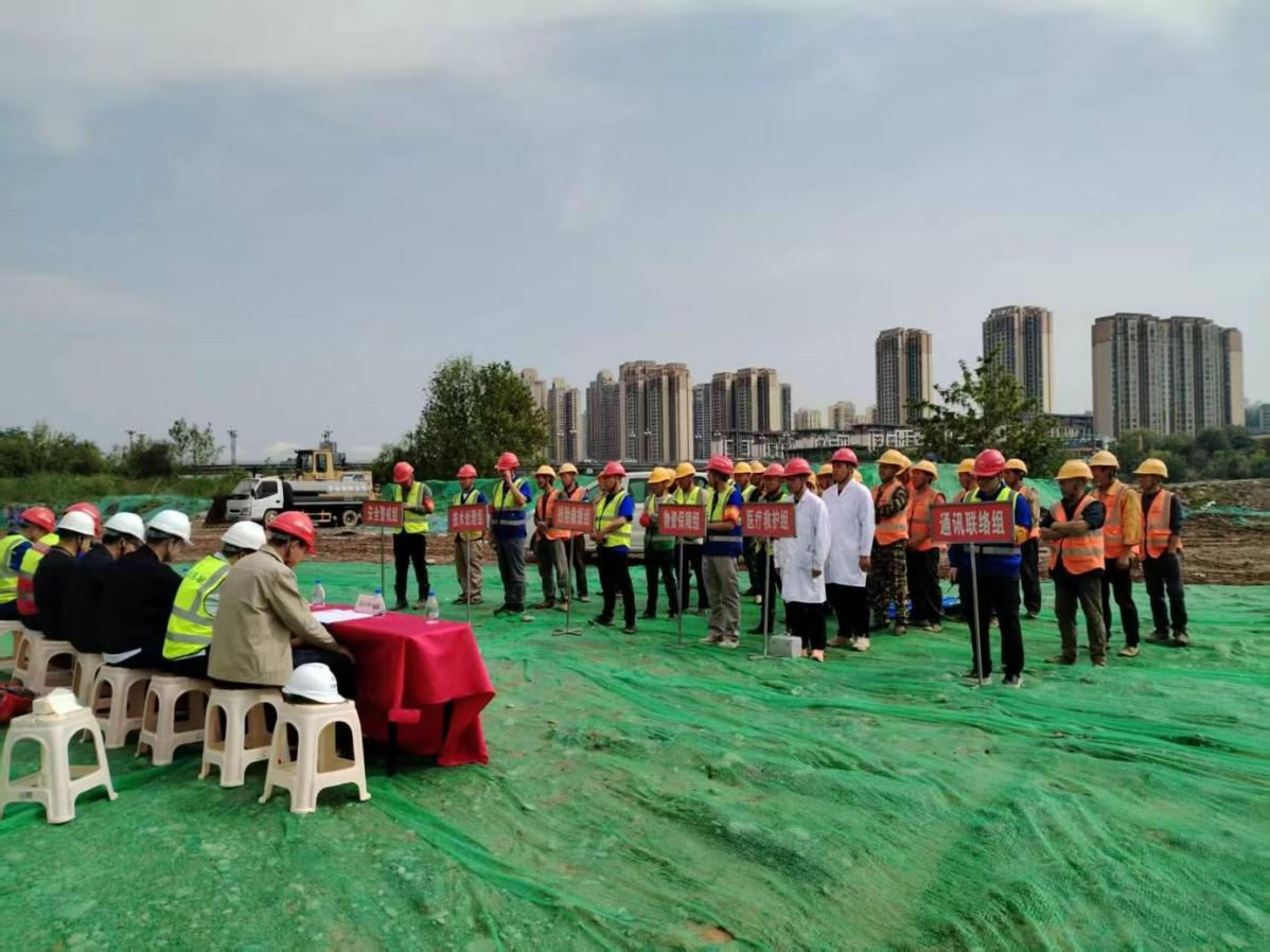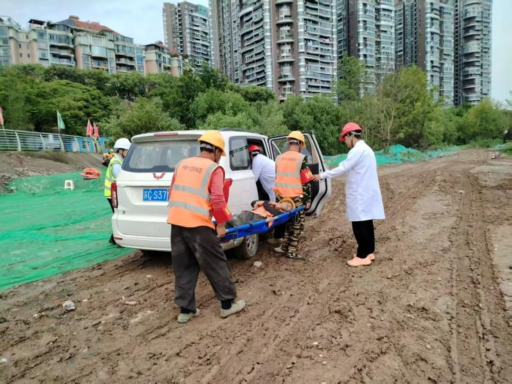 本次演练以涪江流域突发强降雨、上游来水激增、施工现场围堰存在溃坝风险为模拟背景,立足项目临水施工实际,设置了险情预警、应急响应、人员与机械设备紧急撤离、重要物资转移、受伤人员医疗救护等多项实战科目。演练过程紧贴防汛实际,情景逼真、流程紧凑。